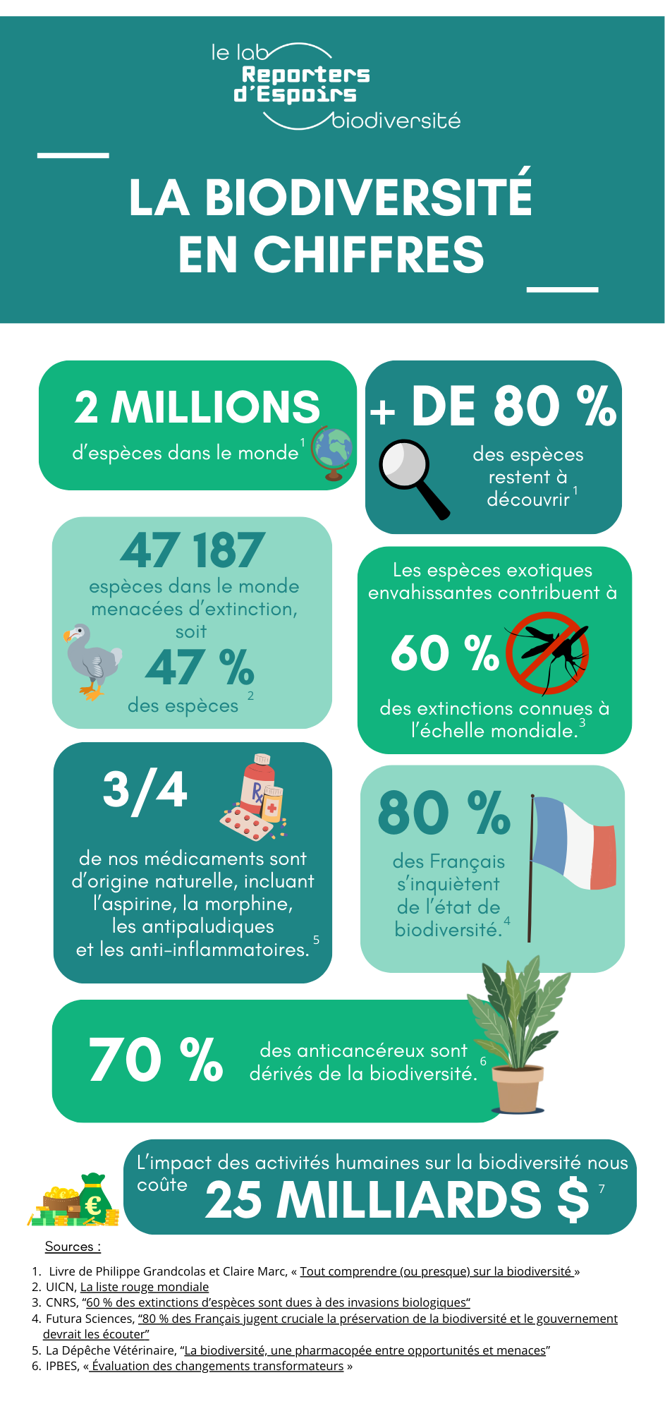 Reporters d’Espoirs remercie la Fondation pour la recherche sur la biodiversité pour sa relecture et ses conseils précieux dans la rédaction de cette page.