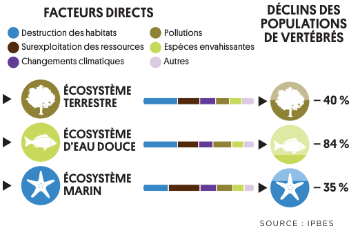 Díaz, S., Settele, J., et al. (2019). Rapport de la Plénière de la Plateforme intergouvernementale scientifique et politique sur la biodiversité et les services écosystémiques sur les travaux de sa septième session. https://files.ipbes.net/ipbes-web-prod-public-files/2020-02/ipbes_global_assessment_report_summary_for_policymakers_fr.pdf
